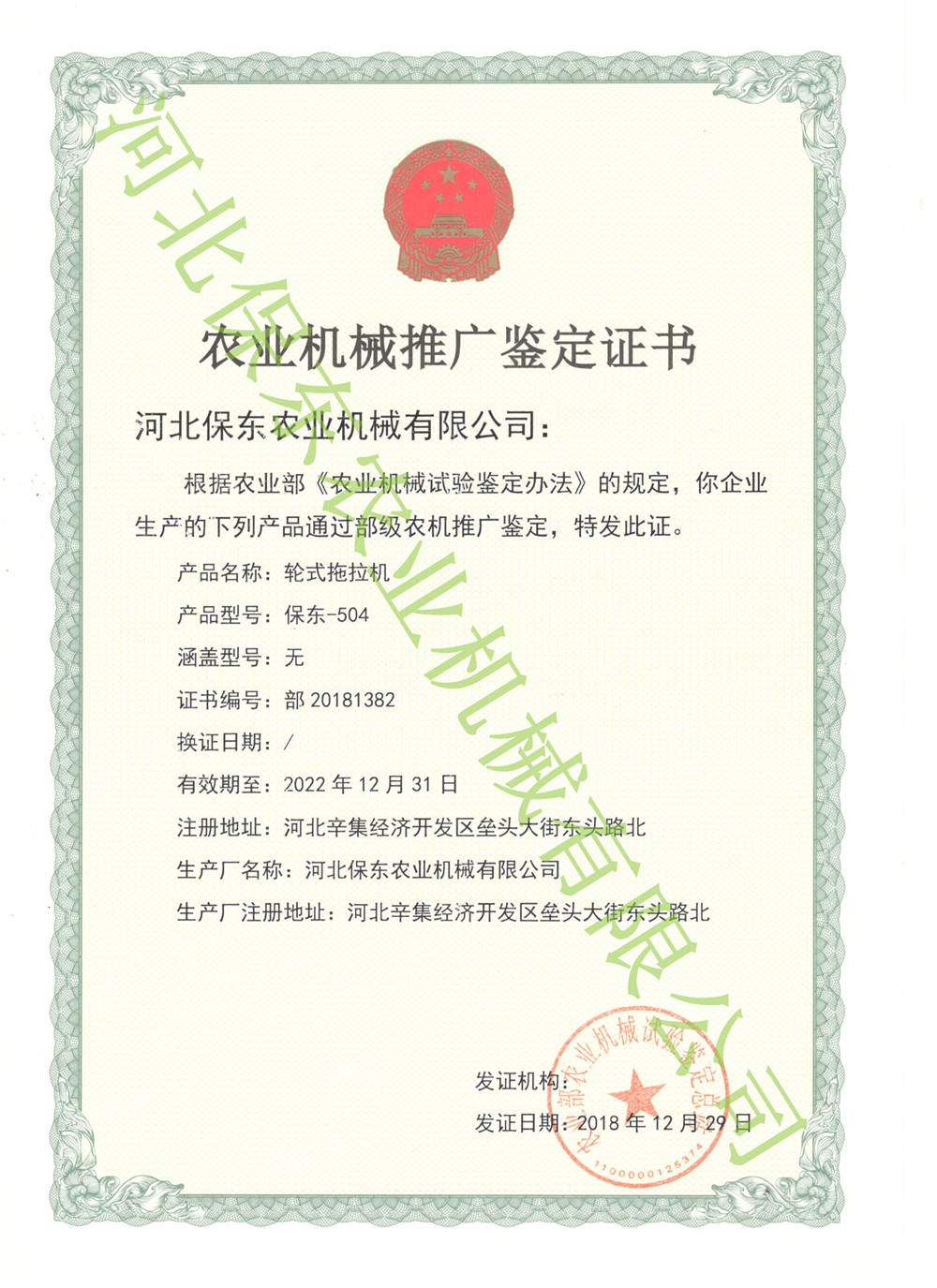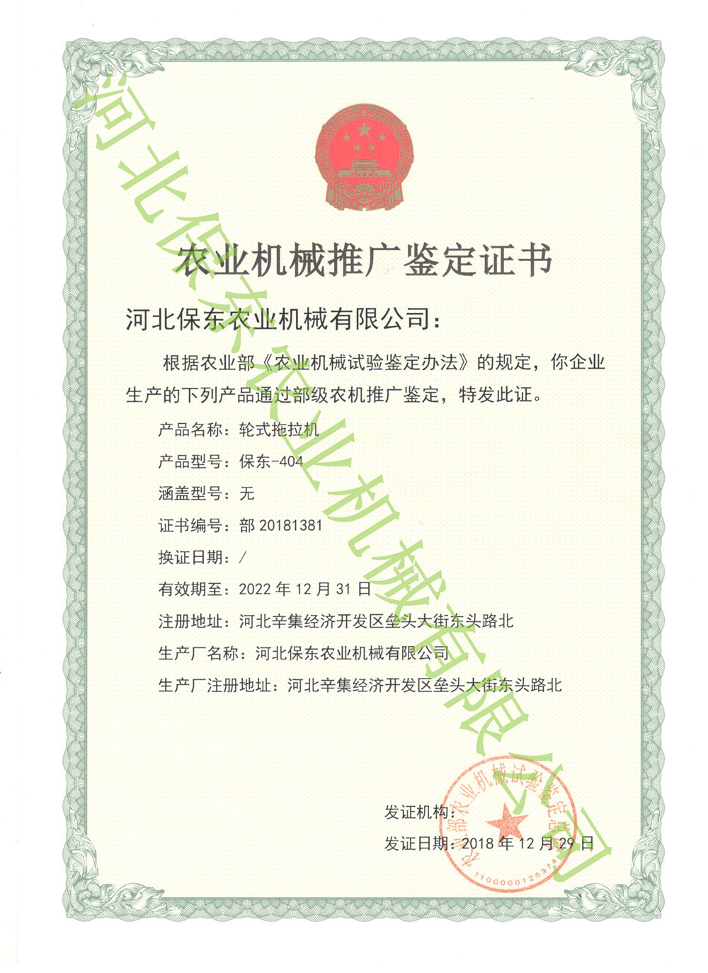 河北保東農業機械有限公司成立于2006年,坐落于“中國皮都”河北省辛集市,地理位置優越,來往交通便利。于2018年斥資3000萬在辛集市省級技術開發區興建新廠,建筑面積占地兩萬平方,并正式啟用。同年被定為“2018辛集重點項目”,設有一套完整的裝配流水線,并規范各項管理制度,從源頭上保證了產品的質量、交貨期和故障率。